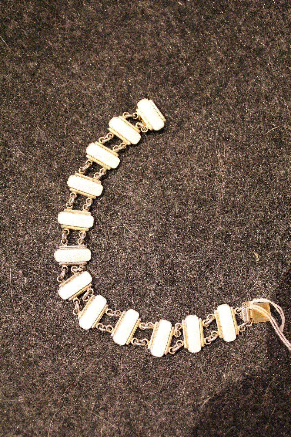 Gammelt armbånd i sterling sølv & hvid emalje. Længde : 16,5cm. Emne nummer: smykke 78