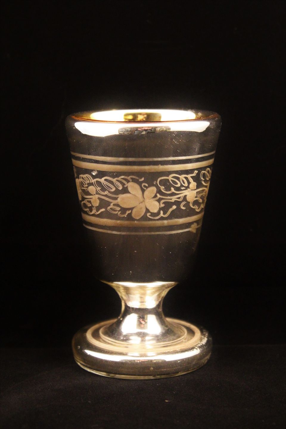 1800 Century mug in mercury glass with fine etched decorations of grapes and wine leaves