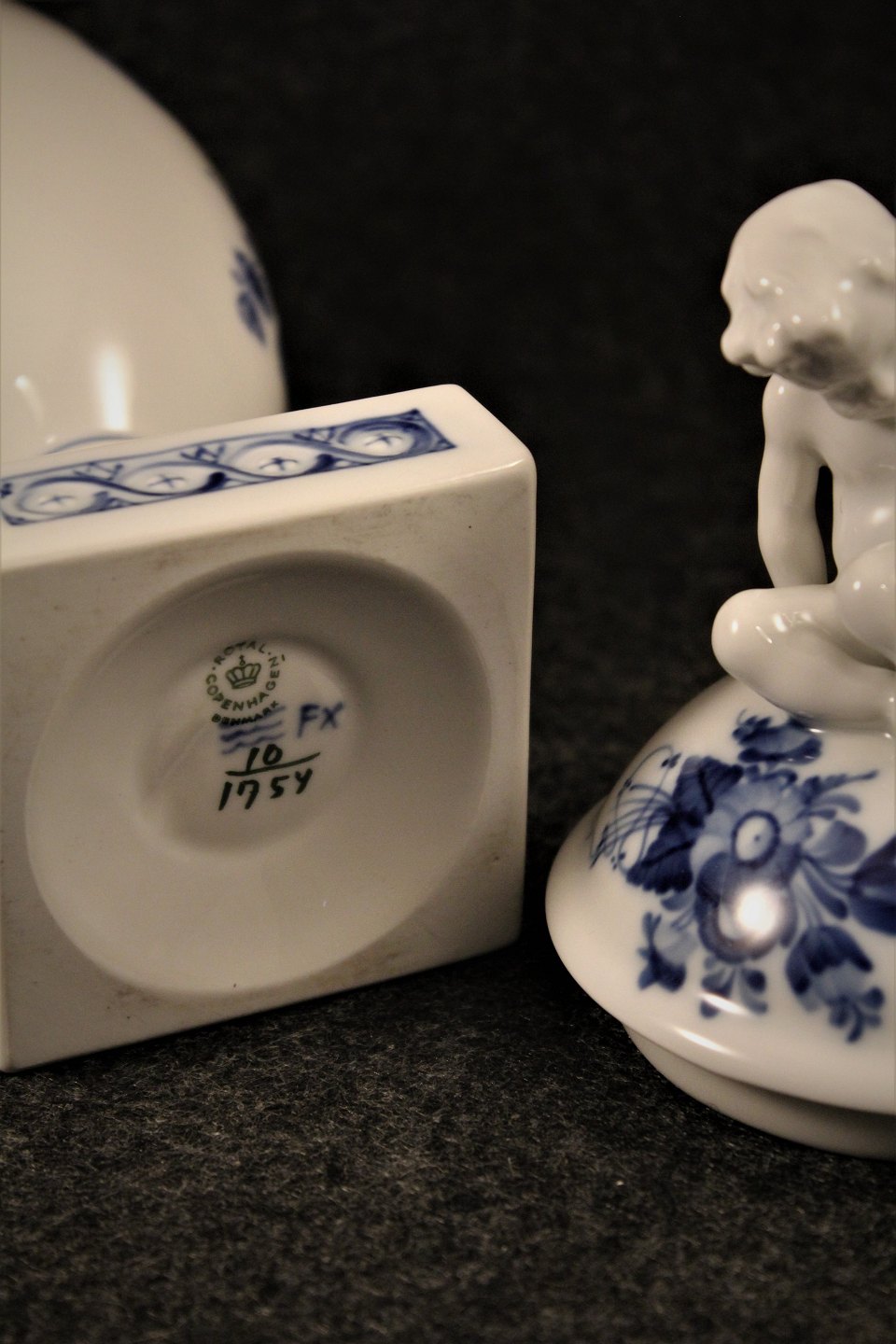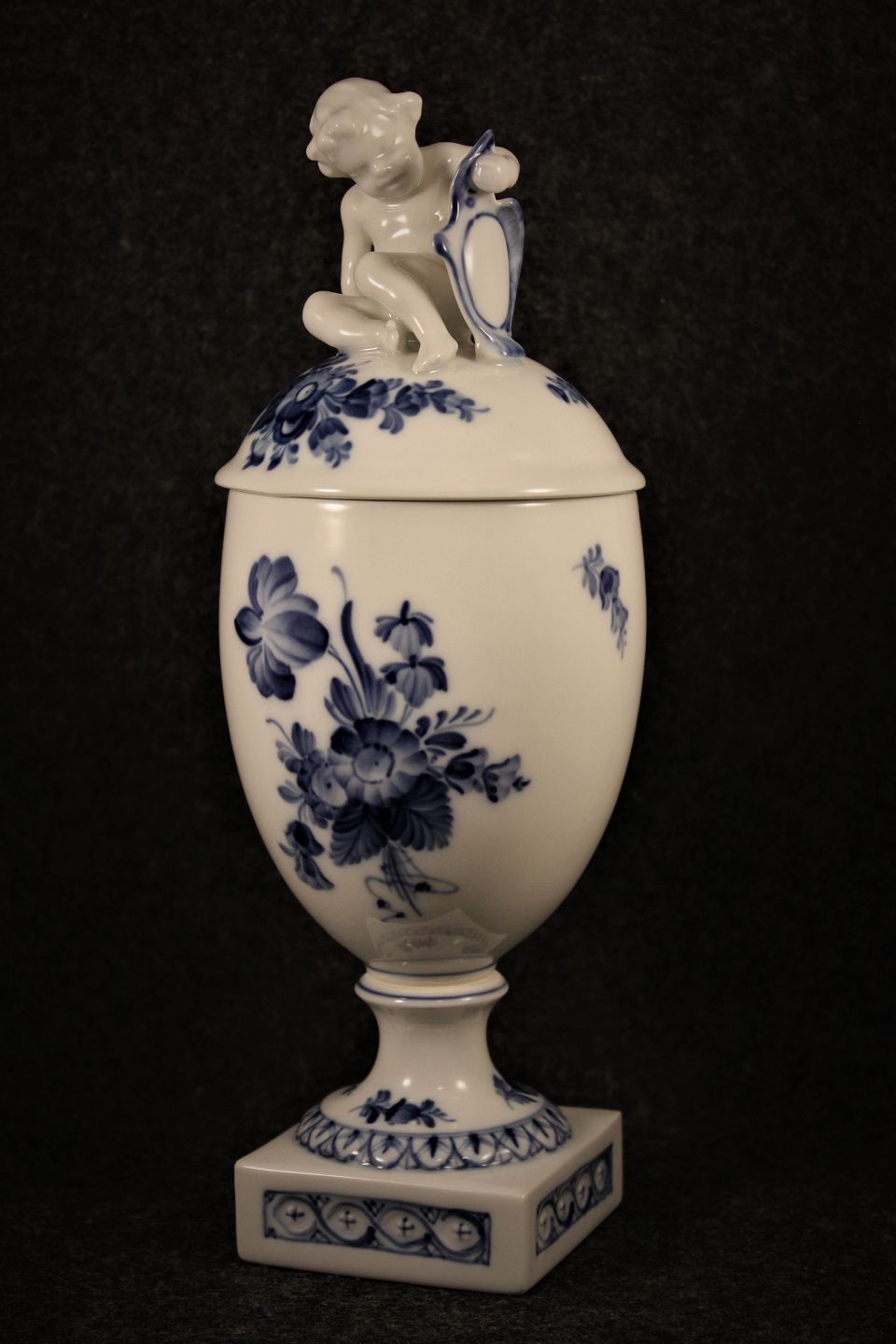 Blå Blomst æggevase / pokal vase fra Royal Copenhagen med lille dreng på låget.