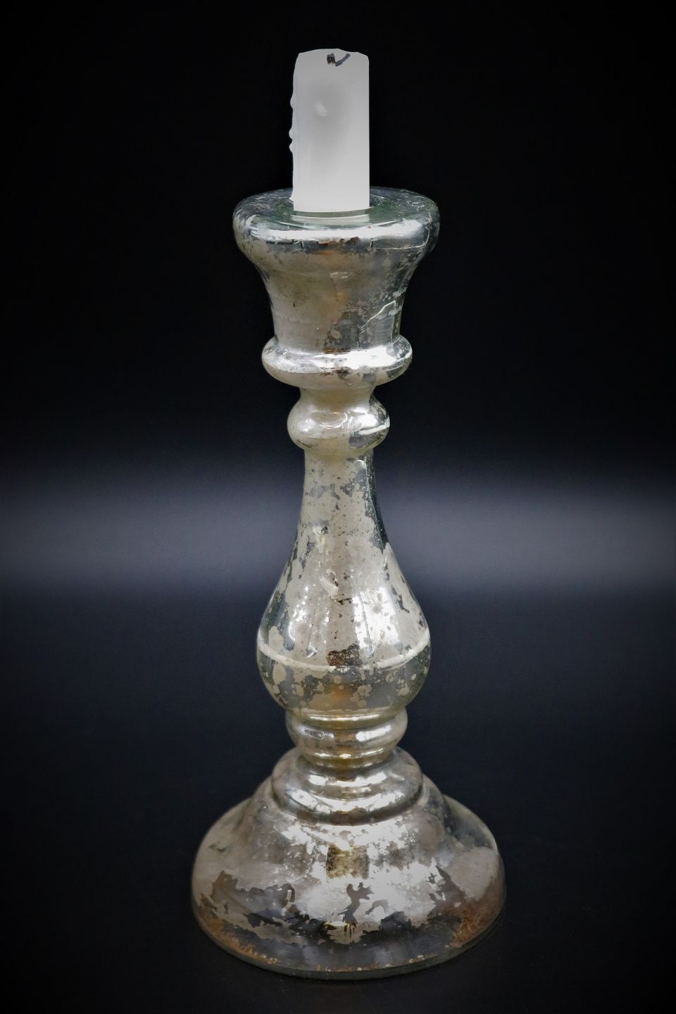 Candlestick in Mercury glass from the 1800 Century with fine old patina. Height: 24,5 cm. Item number: Fattigmandssølv stage nr.29