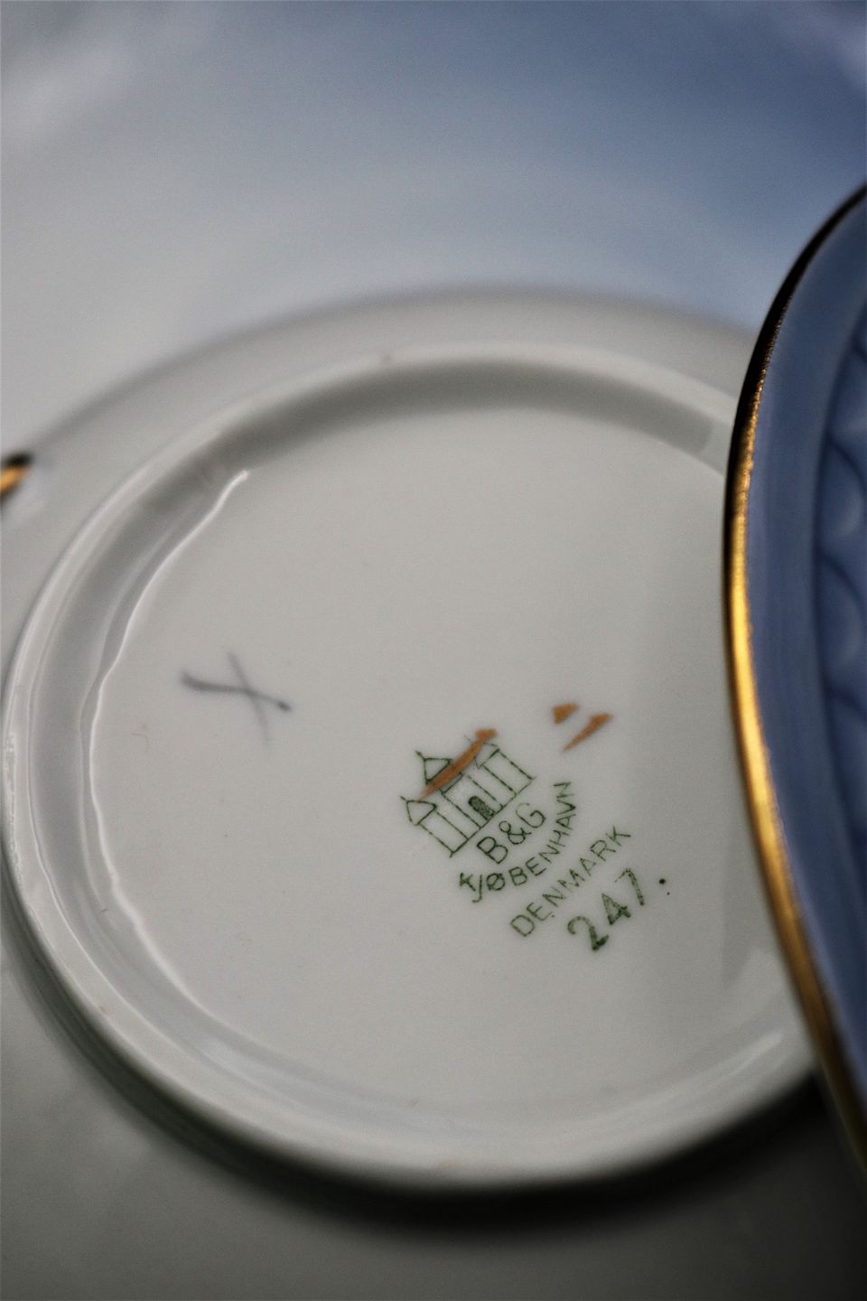 Bing & Grondahl Bouillon bowl with saucer in seagull dinnerware with gold edge.