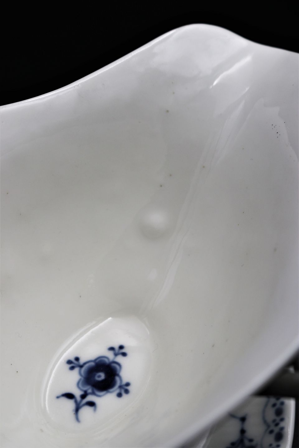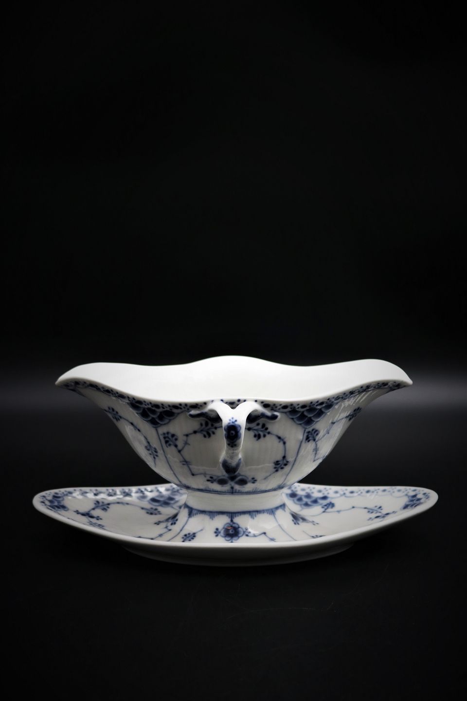 Royal Copenhagen Blue Fluted Half Lace sauceboat on fixed dish.
