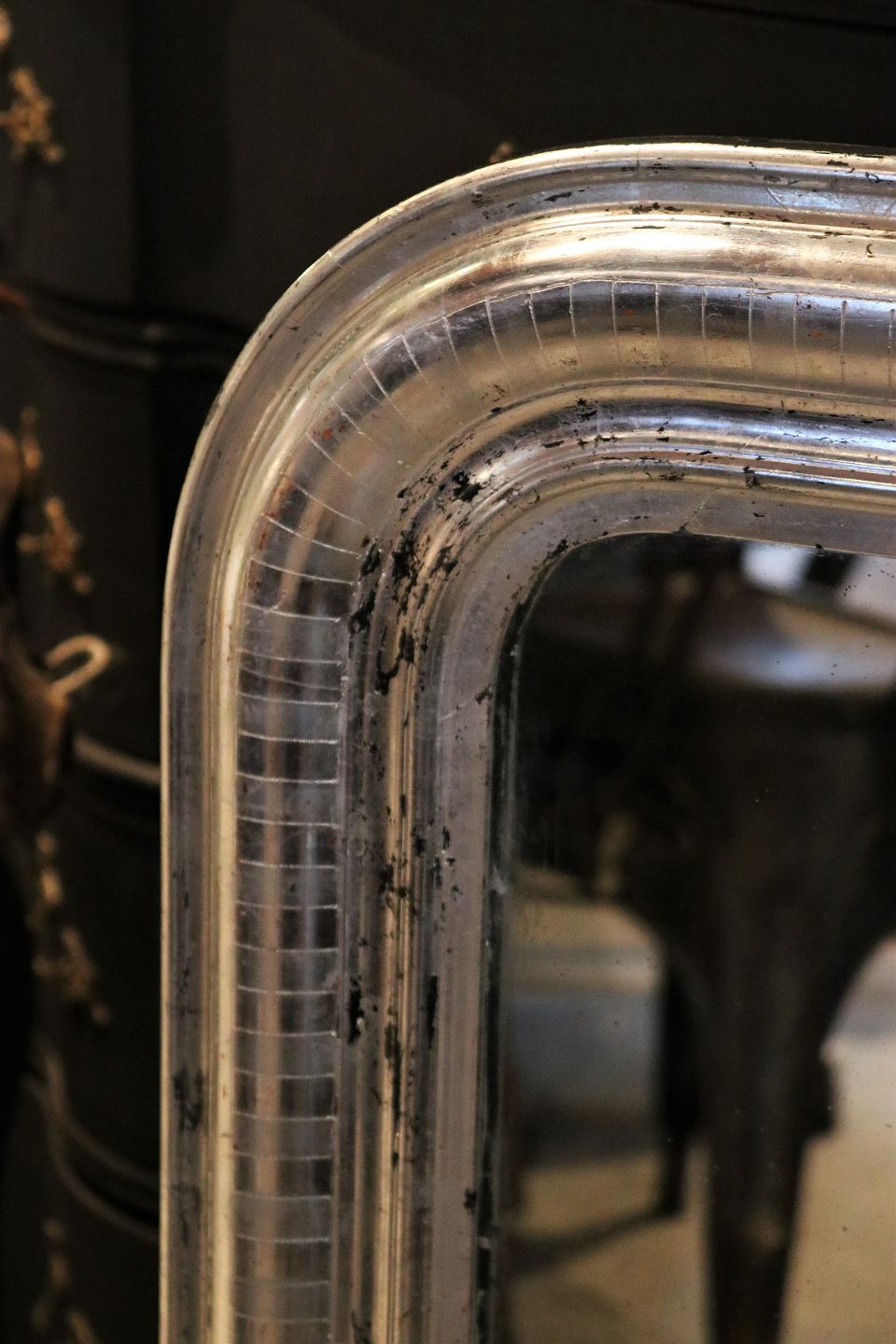 Fransk 1800 tals Louis Philippe sølv kamin spejl med fin dekoreret ramme og originalt gammelt spejlglas og fin patina.