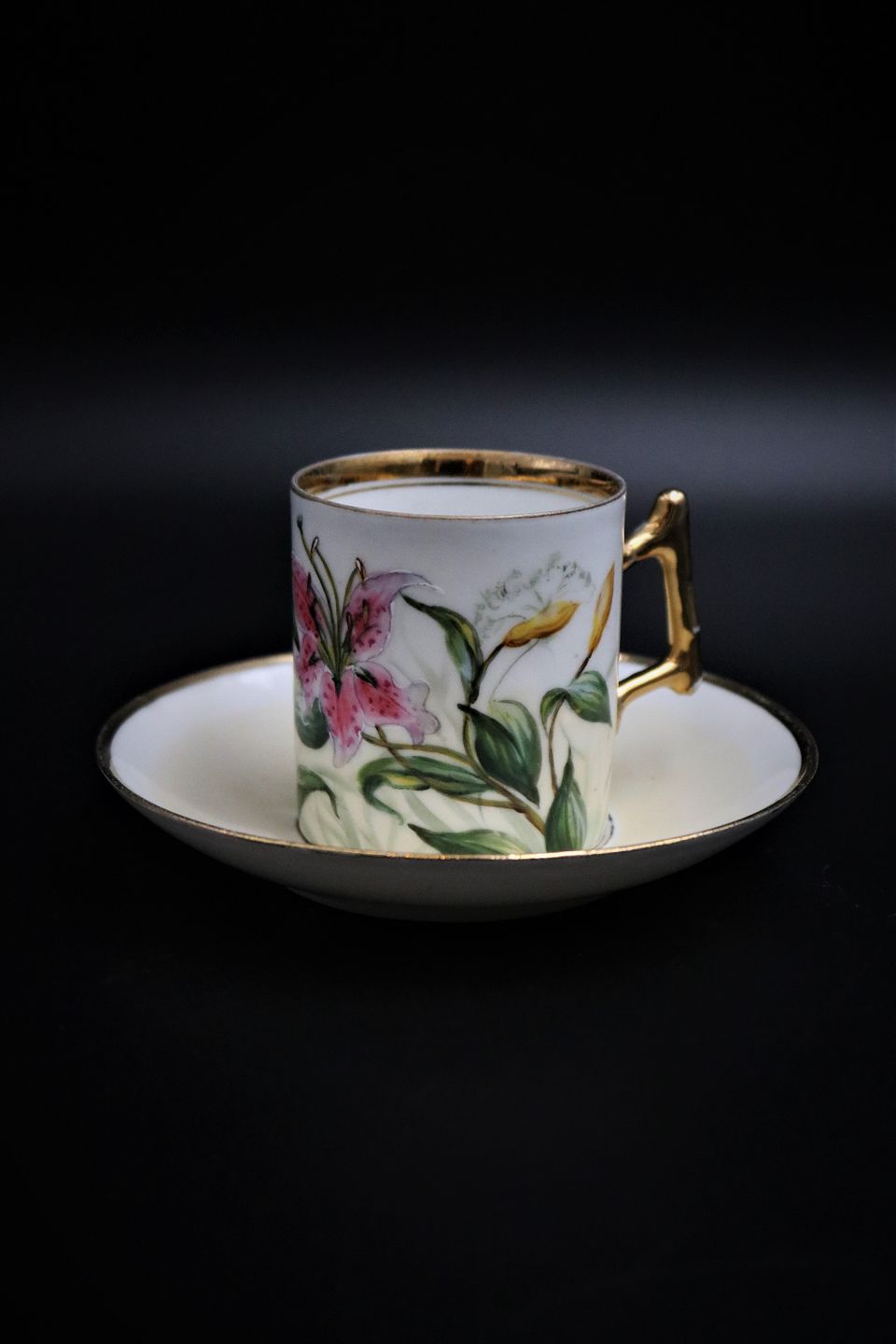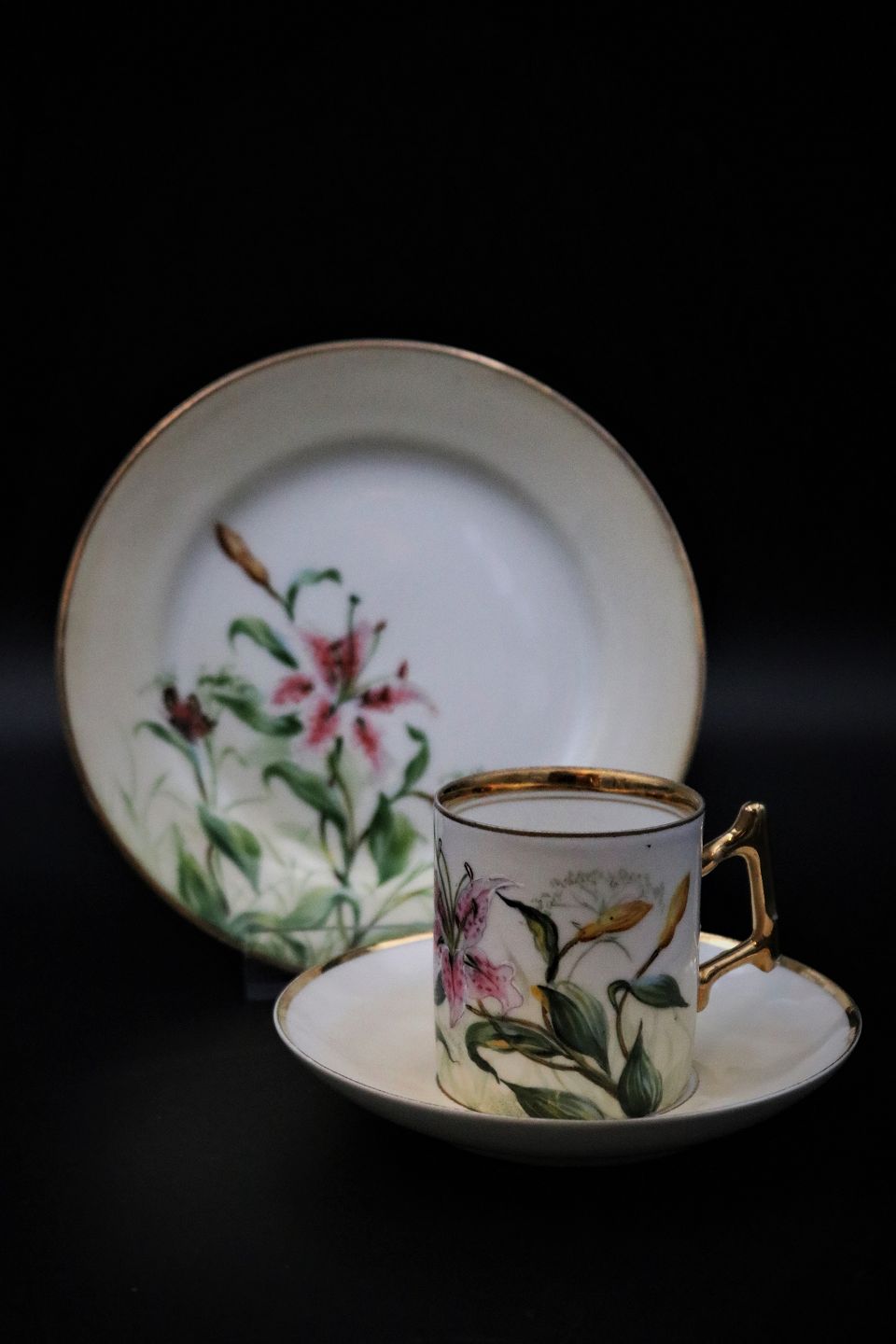 Antikt 1800 tals kaffestel , kaffekop , underkop & kagetallerken