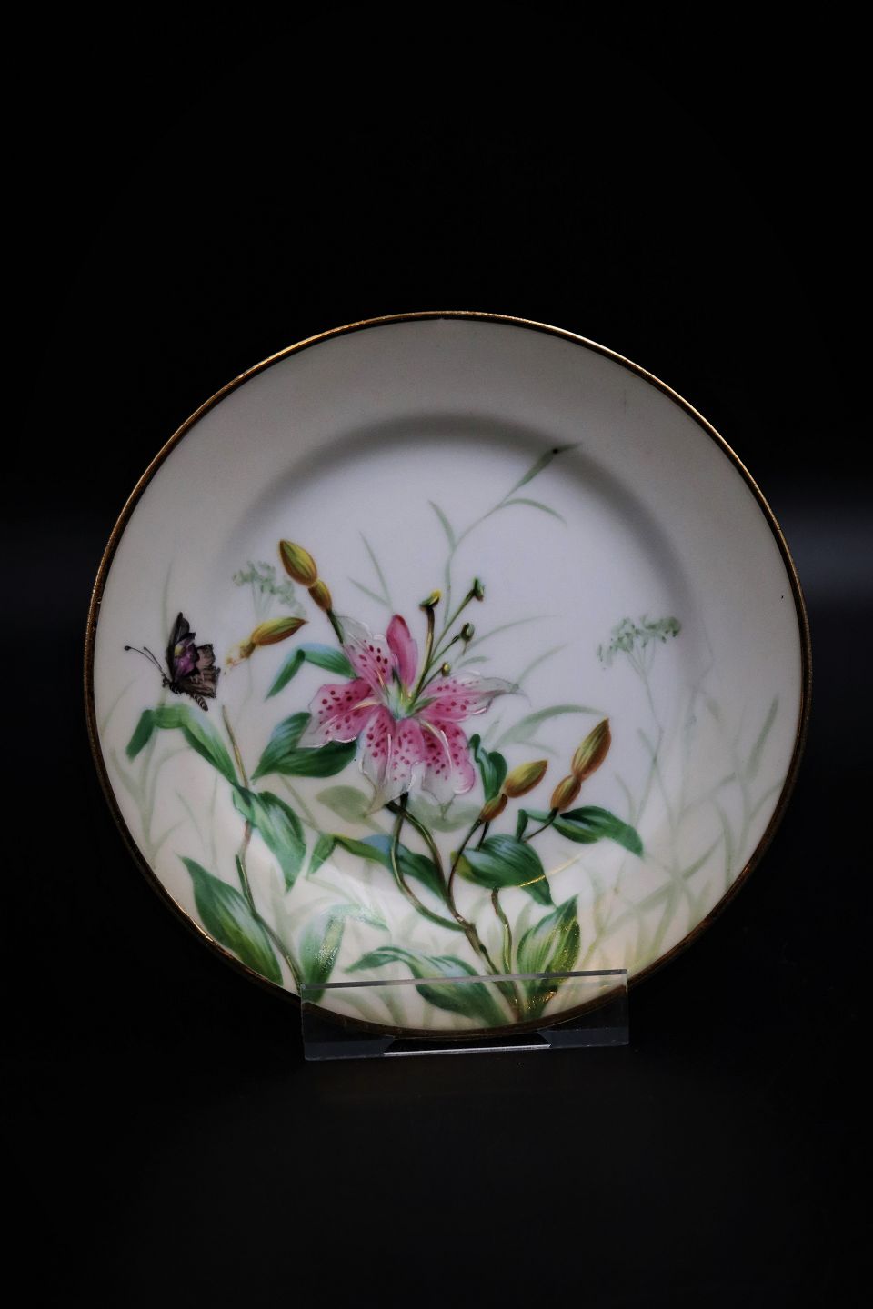 fra Bing & Grøndahl med håndmalet liljer dekoreret med guld kant.