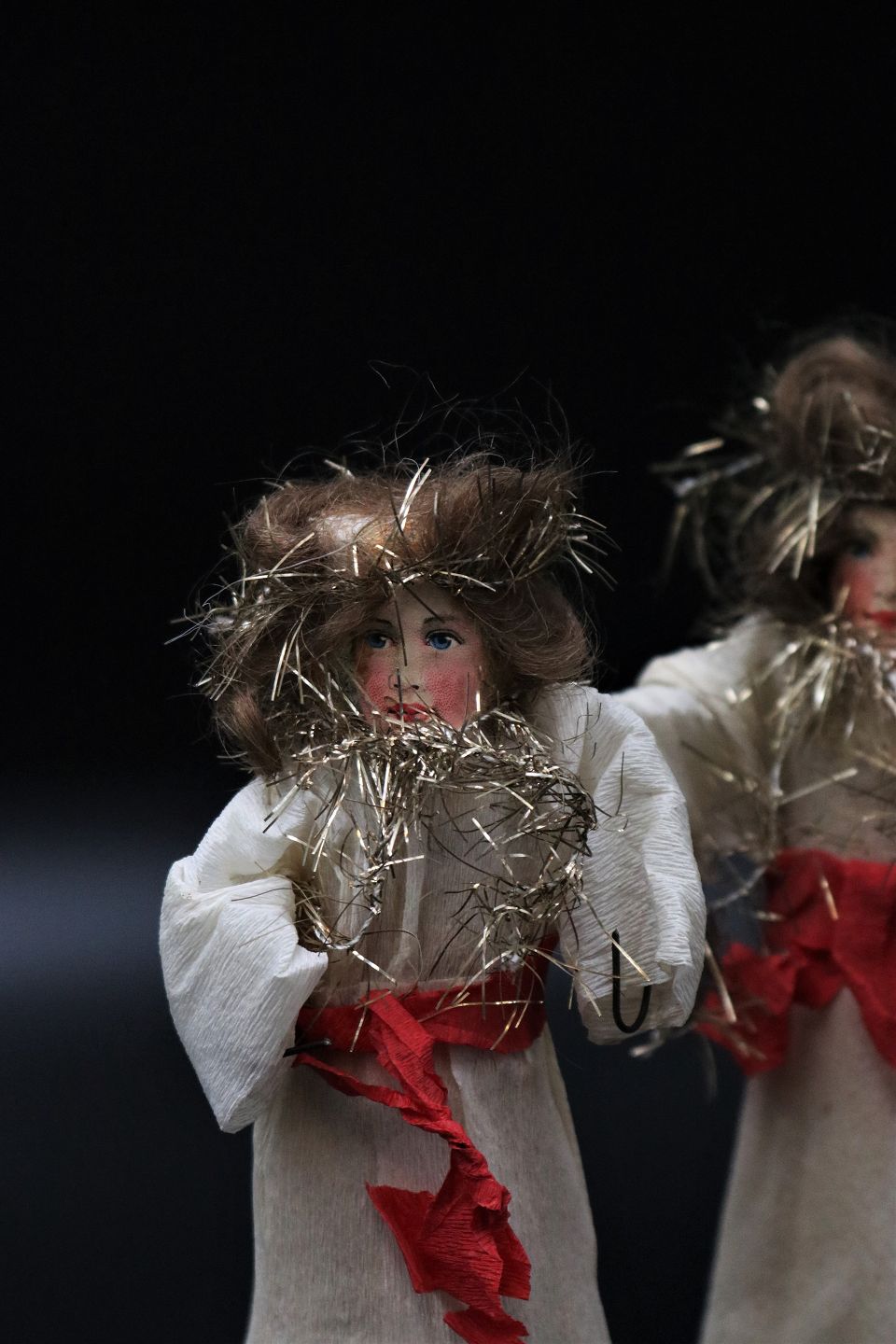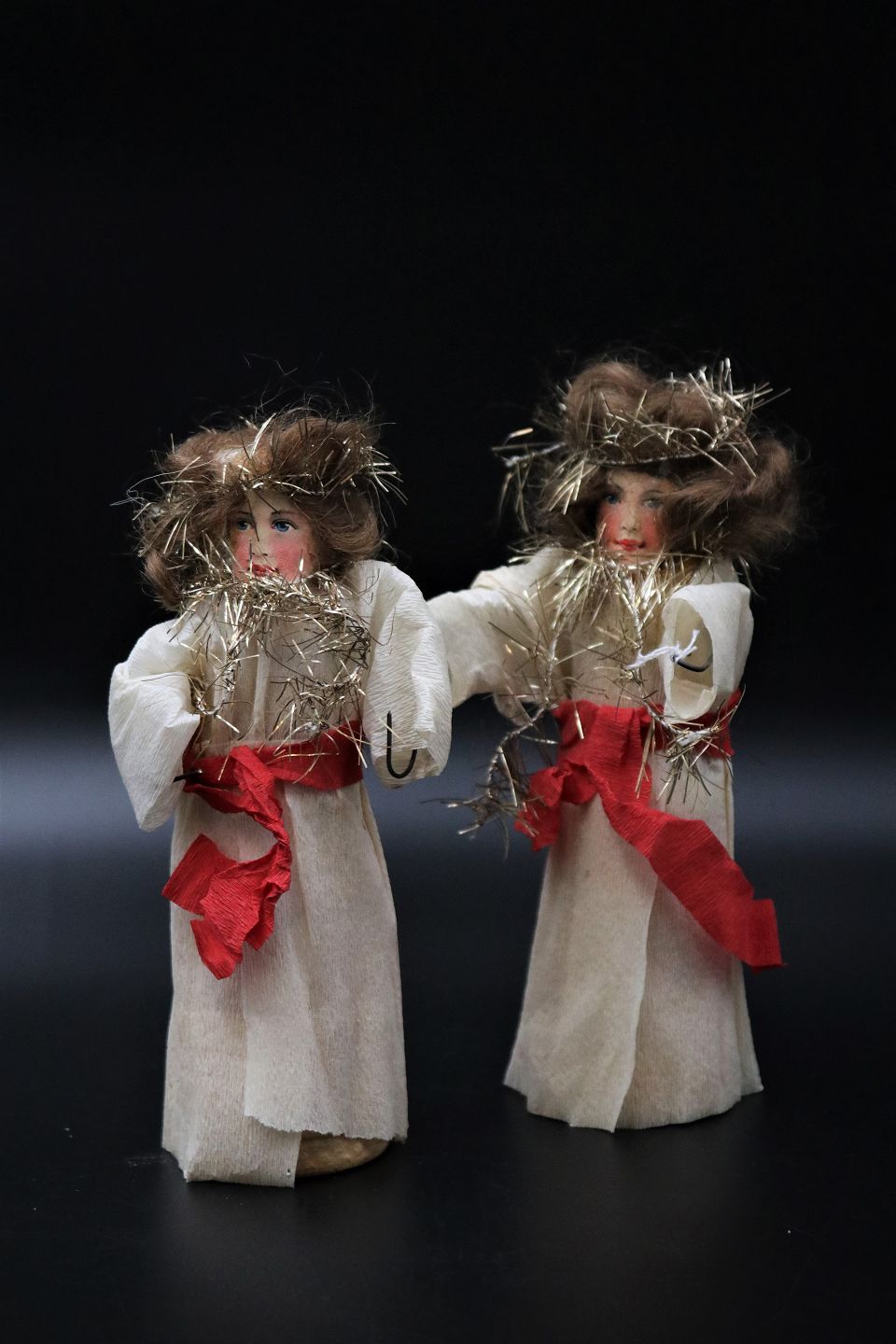 Lille fransk englepige i pap , papir og glitter. Højde: 18cm. ( 2 stk. haves ) Emne nummer: Jul nr.300