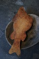 Old Swedish wooden cutting board with fine patina, carved in the shape of a fish. L&W: 50x21cm. Item number: Skærebræt - fisk nr.1