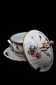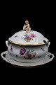 Antique Royal Copenhagen Full Saxon Flower Tureen with gold porcelain edges with saucer and small putty on the lid. (Initeler: FB 1889-1899) ...