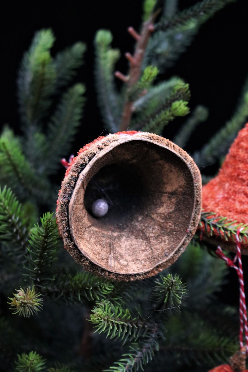 Old Christmas decoration for the Christmas tree, Christmas bell made of papier-mâché and paper from around 1900.