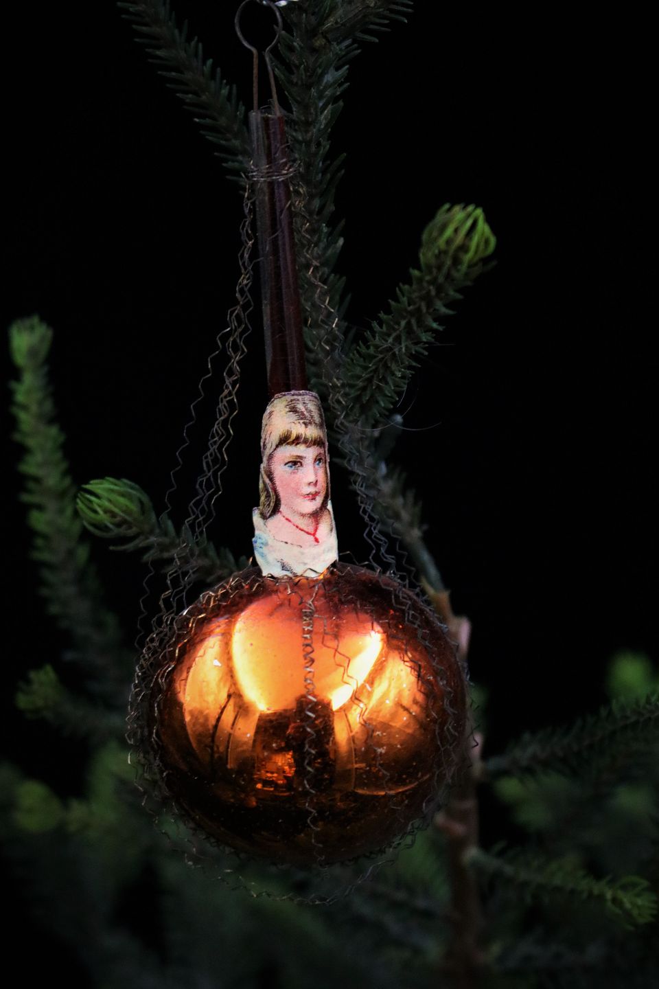 Gammelt glas juleornament / juletræspynt fra omkring 1920-40. H:12 cm. Emne nummer: Jul nr.350