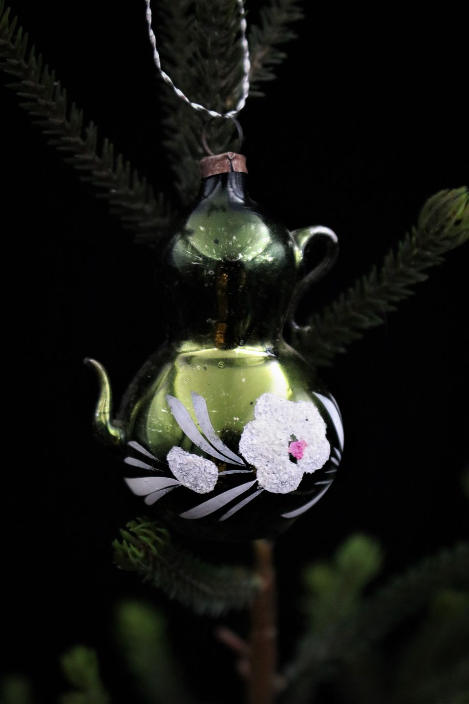 Old glass Christmas ornament / Christmas tree decoration from around 1950. (coffee pot) H: 7 cm. Item number: Jul nr.352