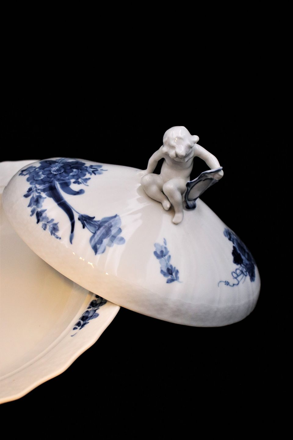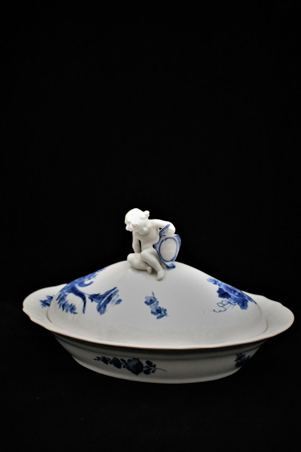 Royal Copenhagen, Blue Flower Curved oval terrine with putti on the lid. Decoration number: 10/1734. 1.sort. H:18 cm. 31x23.5cm.