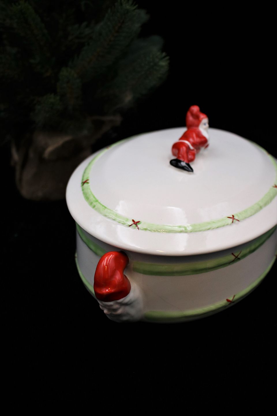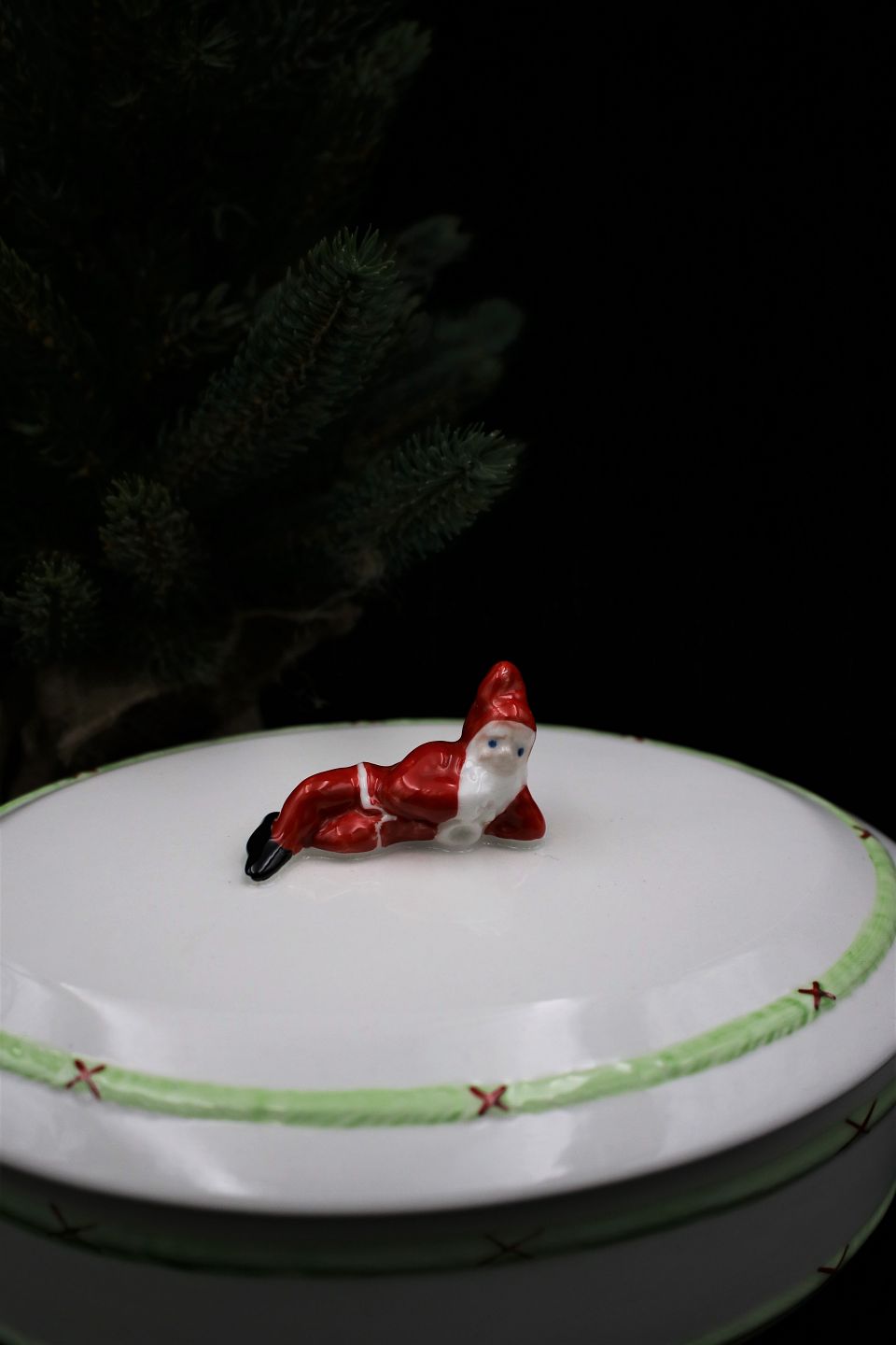 Old hand-painted oval Christmas terrine in porcelain with elves from Gustafsberg. H:13cm. 27x16cm. Item number: Jul nr.400