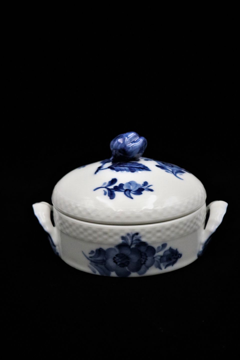 Royal Copenhagen Blue Flower Braided Bonbonniere with handle. Decoration number: 10/8139. 2.sort. H:8cm. Dia.:11 cm.