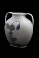 Royal Copenhagen Art Nouveau vase with handle and decorated flower branch. H:17cm. W:15cm. Decoration number: 253/227. 2.sort.