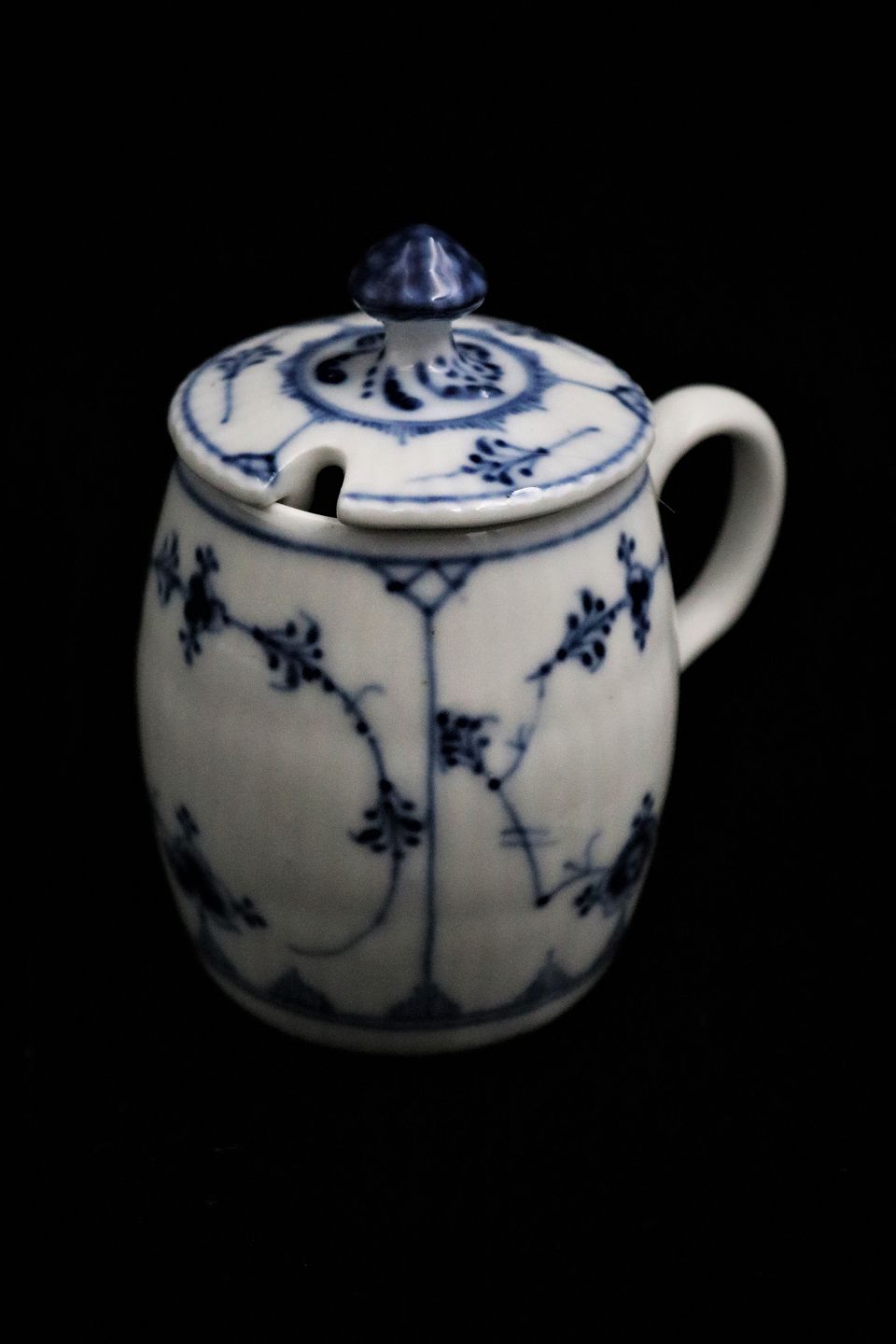 Royal Copenhagen Blue Fluted Plain mustard jar with lid and handle. Decoration number: 1/137. 1.sort. H:10cm.