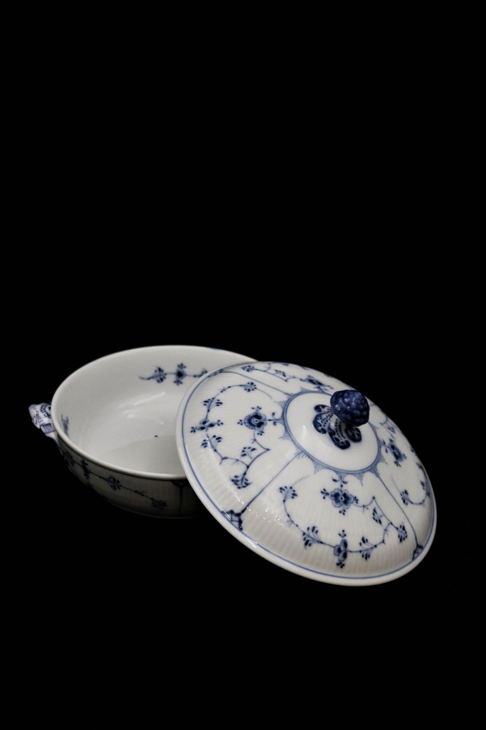 Royal Copenhagen Musselmalet Riflet rundt ragout fad / Lågfad. H:15cm. Diameter:21 cm. Dekorations nummer: 1/277. 2.sort.