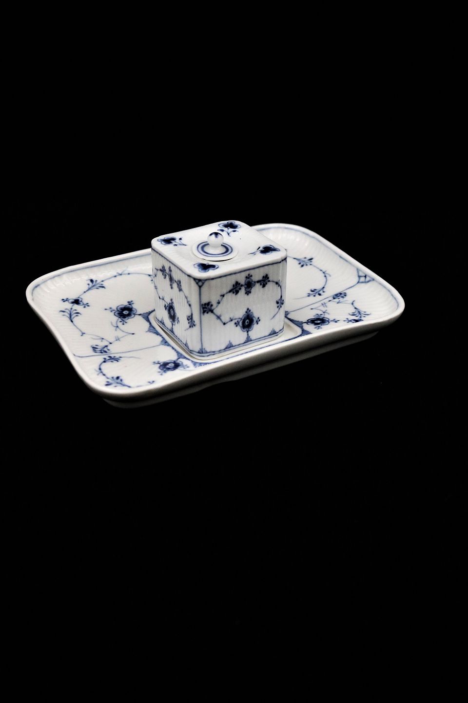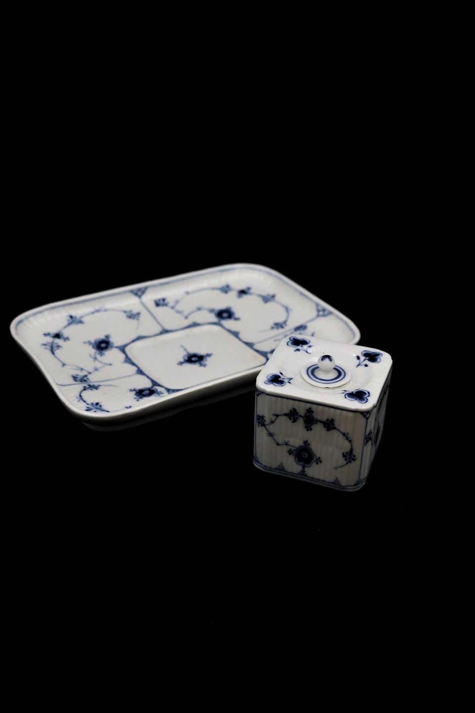 Antique Royal Copenhagen Musselmalet Fluted writing set for ink on plate. (Can be used as a small vase for a single flower)