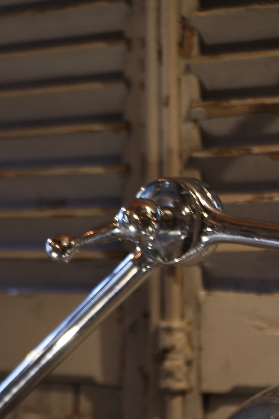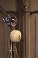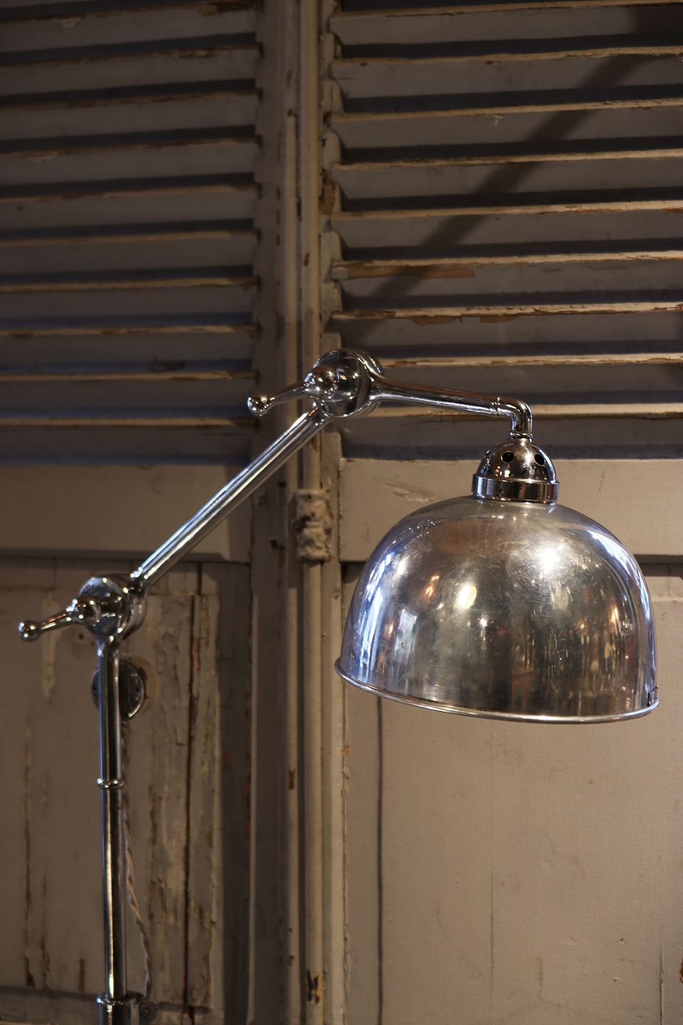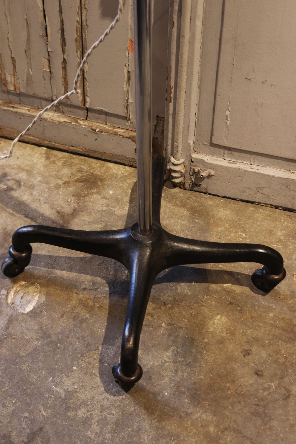 Old floor lamp on wheels in chrome with a fine patina.