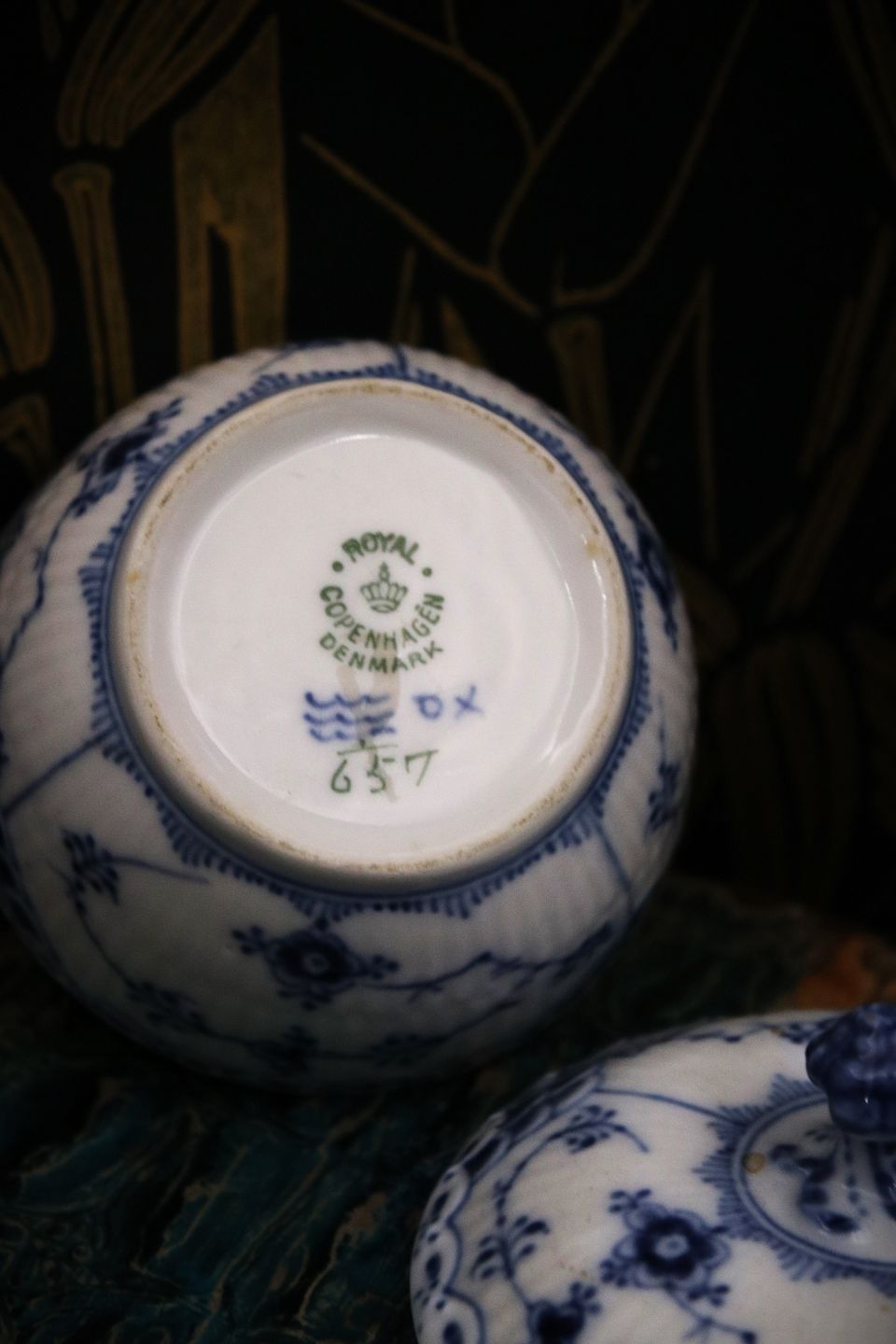 Royal Copenhagen Blue Fluted Half lace sugar bowl with lid.