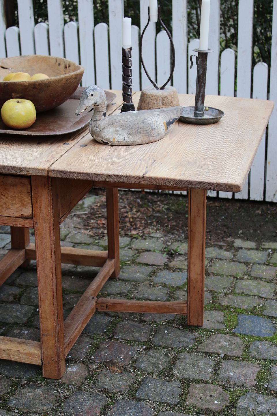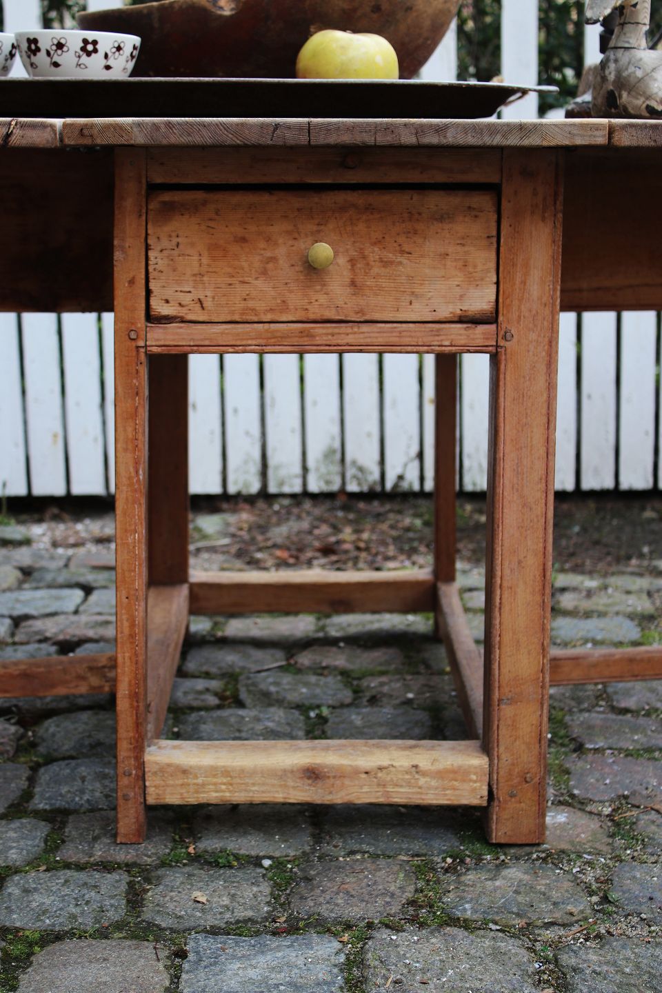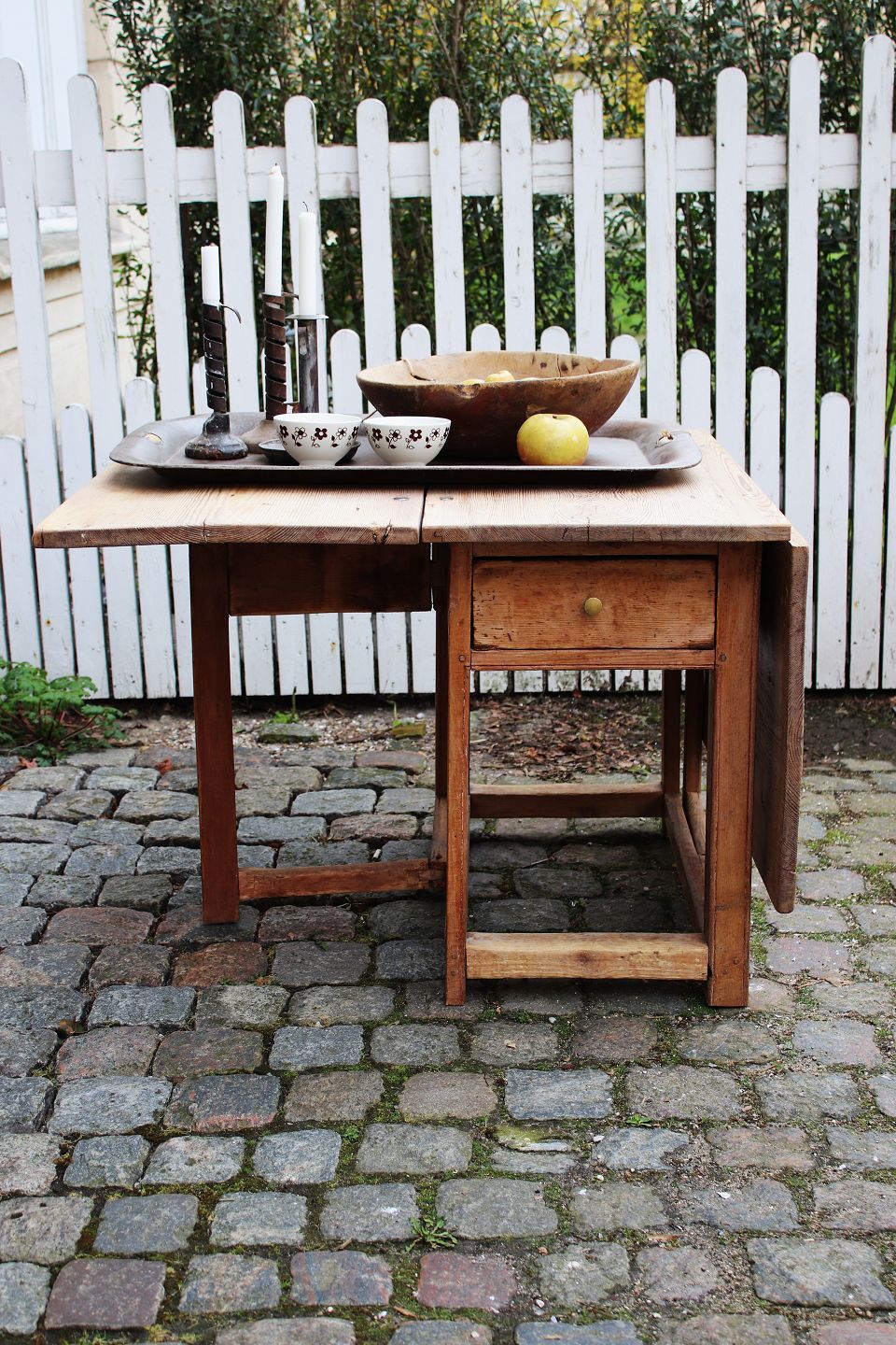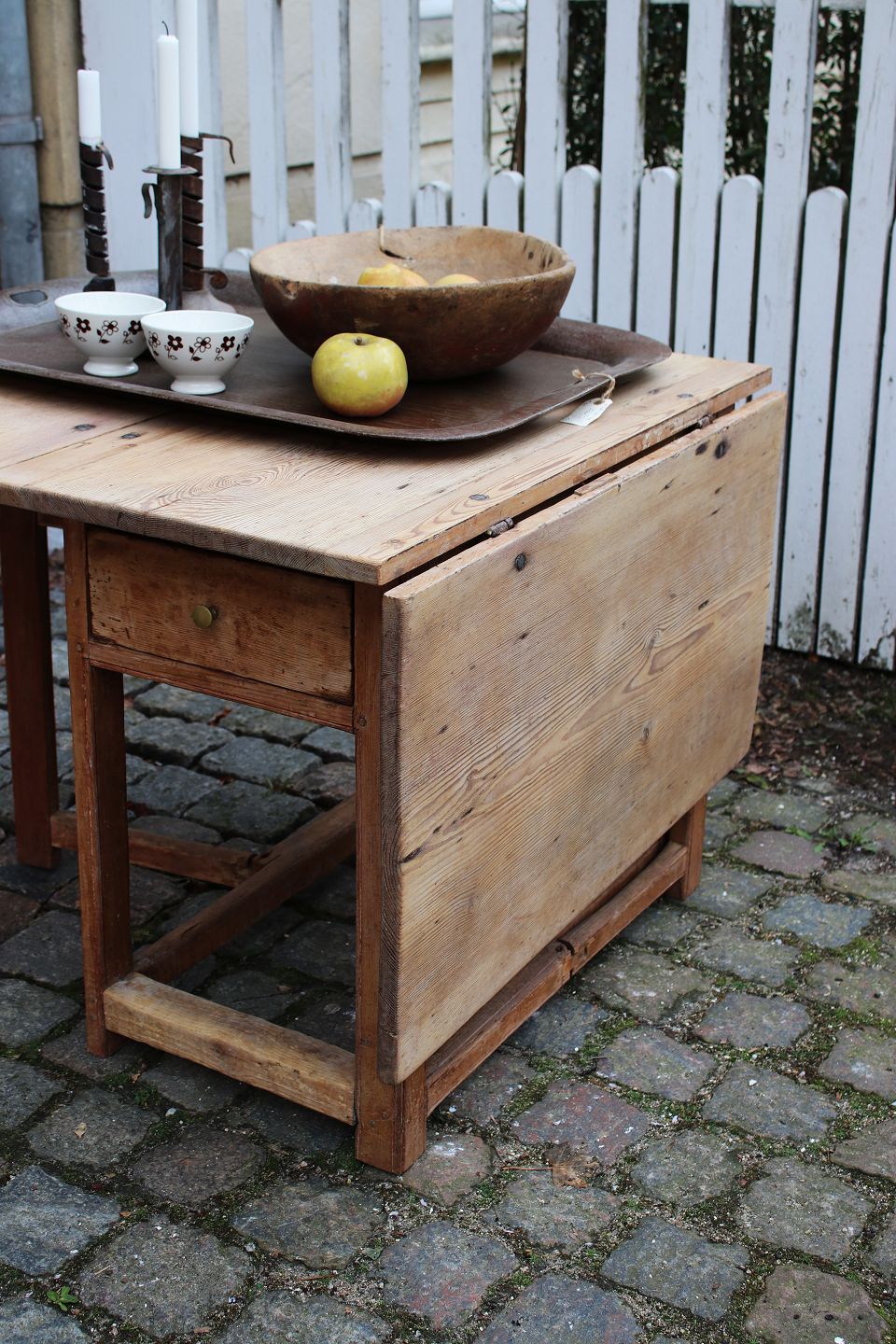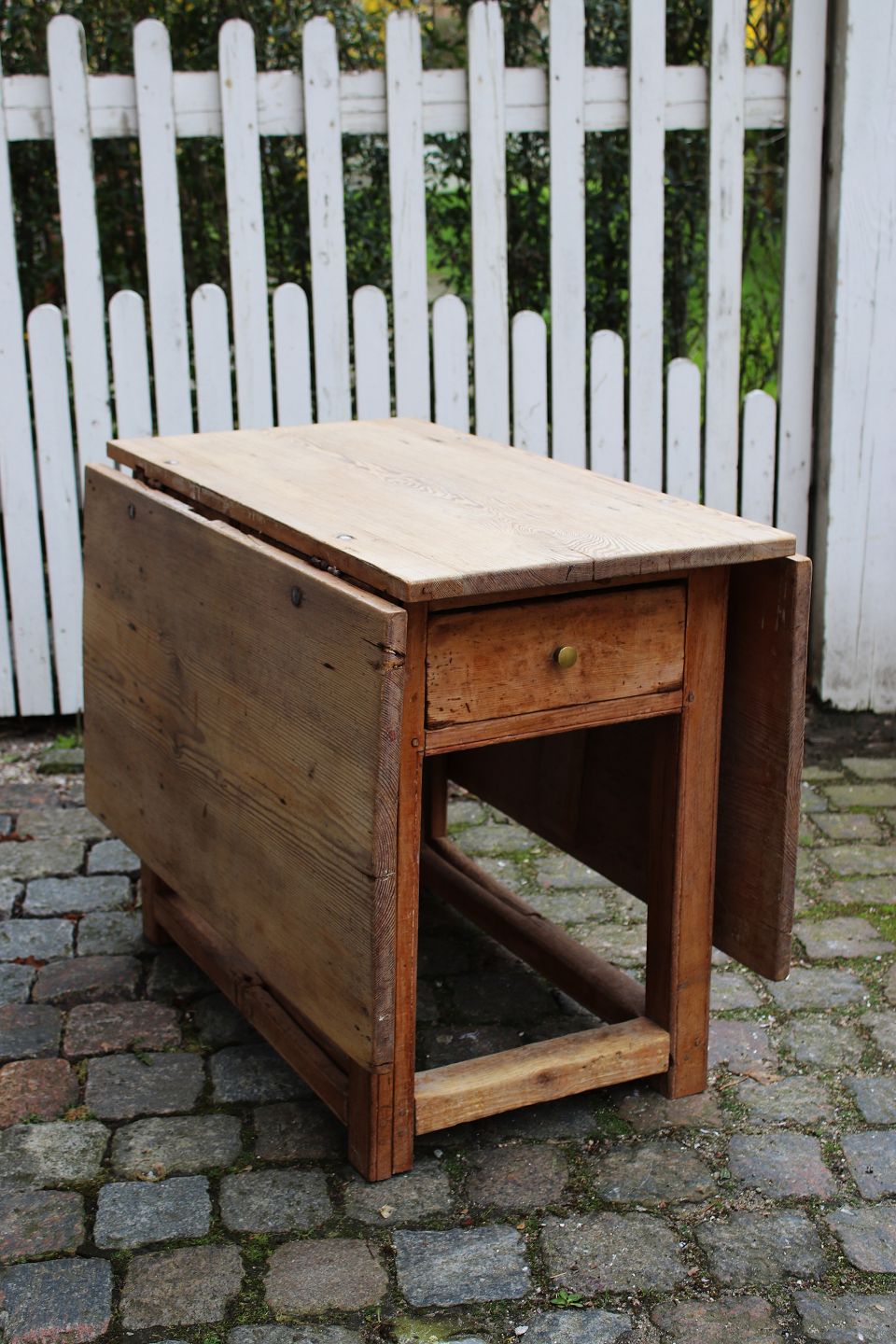 The table has 2 flaps and a continuous drawer in the middle.