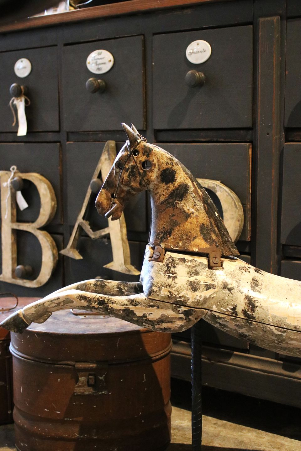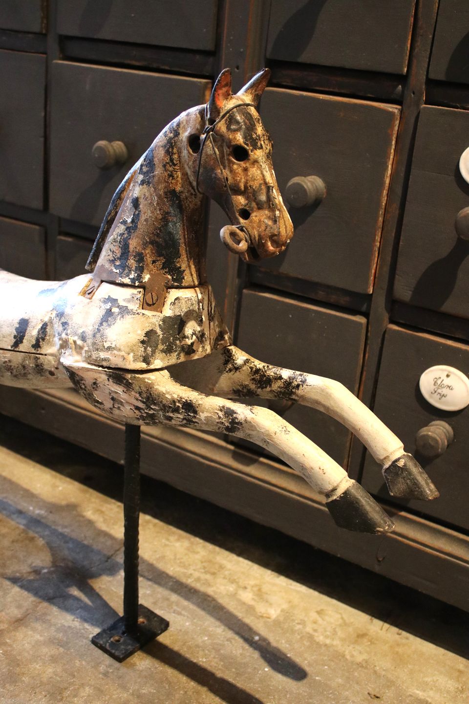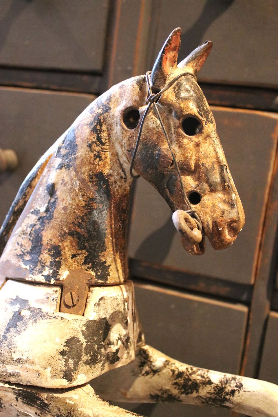 Decorative, French 19th century wooden horse with iron head and old paint with a really nice patina...