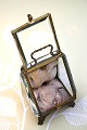 Antikt fransk smykkeskrin i bronze med facetslebne glas og silkepude i bunden og med en fin gammel patina.