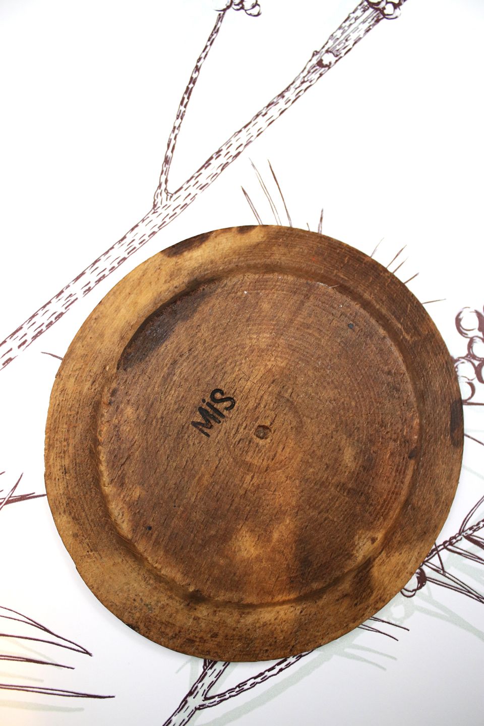 Swedish 19th century wooden plate with fine patina. Dia.: 17.5cm.
