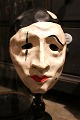 Decorative, old clown mask in painted papier-mâché mounted on old black painted wooden base. H: 44cm. W: 16cm.