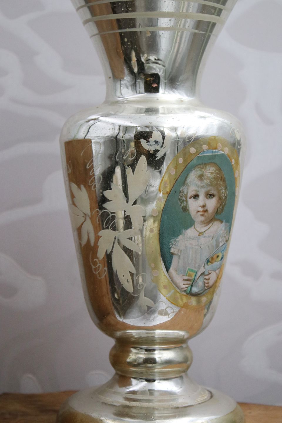 with painted leaf tendrils and hand-painted portrait of a little girl