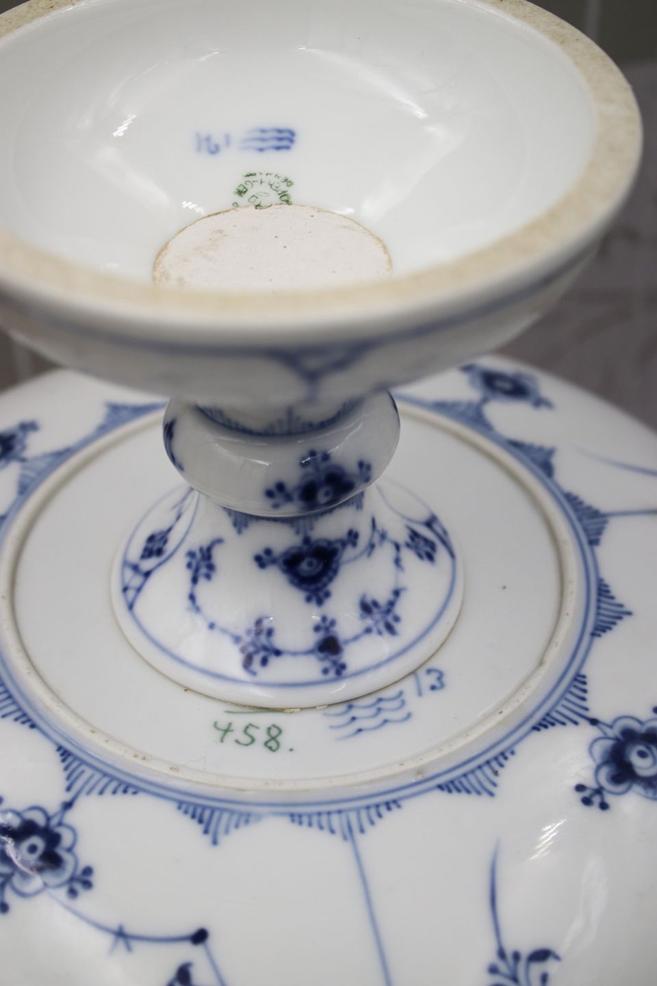 Frugt / kage opsats i Musselmalet Riflet fra Royal Copenhagen.