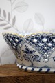 Antik Musselmalet frugtskål med gennembrudt kant og guldkant.