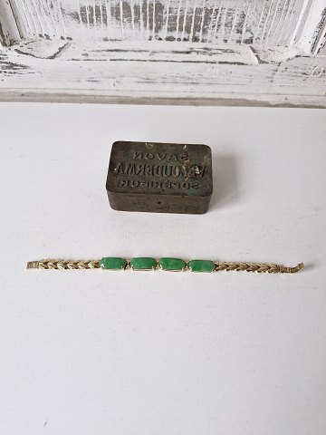 Smukt armbånd i 18 kt guld med jade Stemplet: THC - 75% - armbåndet er testet hos Vitus Guld for lødighed Længde 18 cm. Bredde 7 mm.