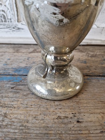 19th century vase in mercury silver decorated with leaves. Appears with a "fold" on the foot, it was created during production. Height 24.5 cm.