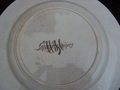 Håndmalet fransk fajance tallerken fra Sarregumines, produceret i starten af 1900tallet. Diameter 25cm.