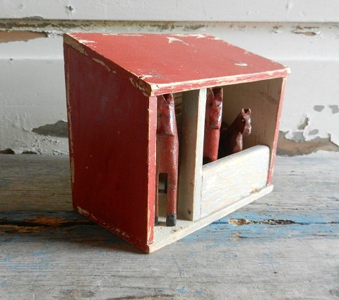 Lille heste stald Højde 14cm. Længde 16,5cm. Dybde 10cm. Hestene på billedet er ikke med i prisen!