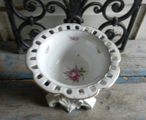 Stor smuk tysk Von Schierholz opsats med pousserede blomster. Fremstår hel og fejlfri. Højde 20cm. Diameter 21cm.