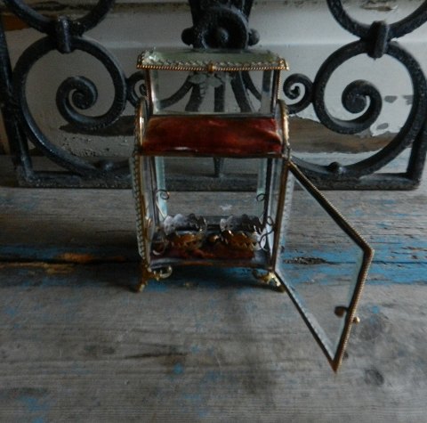 Meget sjældent glas skrin, stort "rum" til to parfume flakoner, samt "rum" øverst til smykker.