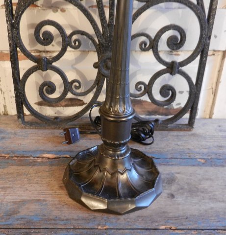 Art Deco bordlampe af grønpatineret metal (a la disco metal)