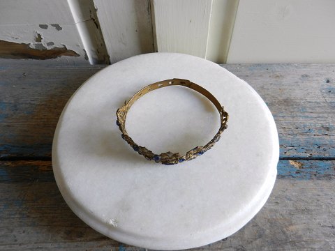 Smuk fransk 1800tals madonna krone i forgyldt metal med blå og klare sten.