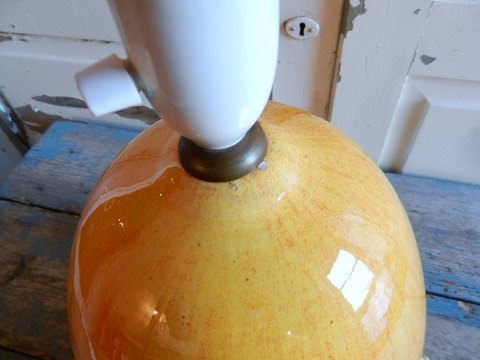 Skøn æggeformet Kähler bordlampe. Signeret HAK Danmark. Fremstår med et mikroskopisk glasurafslag, se billed. Højde incl. fatning 42cm.