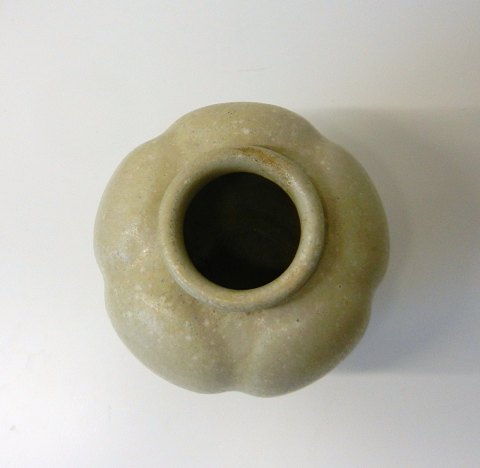 Arne Bang sandfarvet vase, signeret AB 148, Højde 13cm.