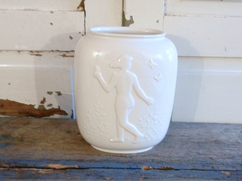 Royal Copenhagen Hans Henrik Hansen, Blanc de Chine vase, med motiv af nøgen kvinde og mand i relief.