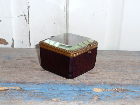Meget smukt skrin i rubinglas med facetslebet klart glas låg.