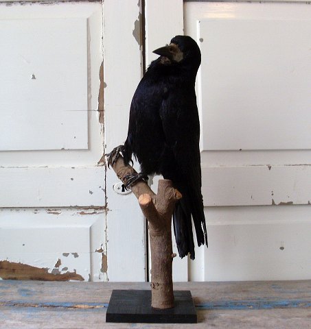Flot udstoppet råge monteret på gren.