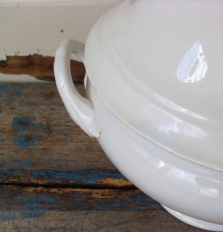 Fransk fajance terrin. Fremstår med en gammel reparation på låget, se billed. Højde 27cm. Diameter 25cm.