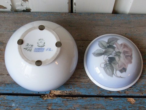 Royal Copenhagen Art Nouveau låg krukke dekoreret med rose.