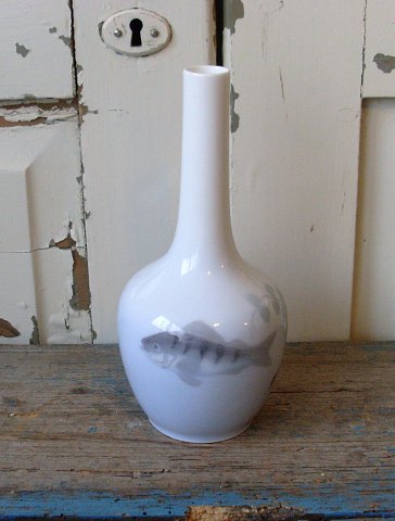 Royal Copenhagen Art Nouveau vase, dekoreret med fisk og tang. No. 161/43B, 1. sort. Højde 19cm. Produceret mellem 1894-1900