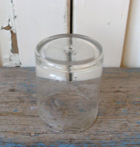 Rørformet ølglas med plan sleben bund, dekoreret med egeløv. Fra ca. 1840.