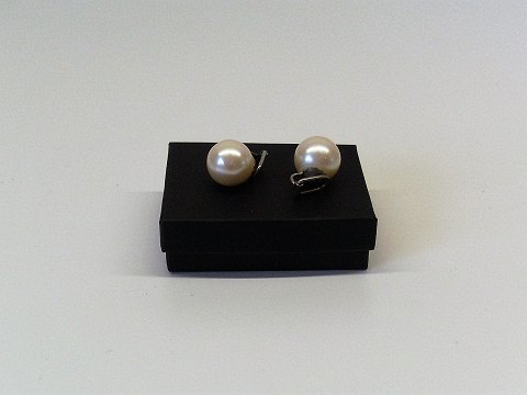Par smukke perle øreklips, selve klipsen er af sterling sølv.